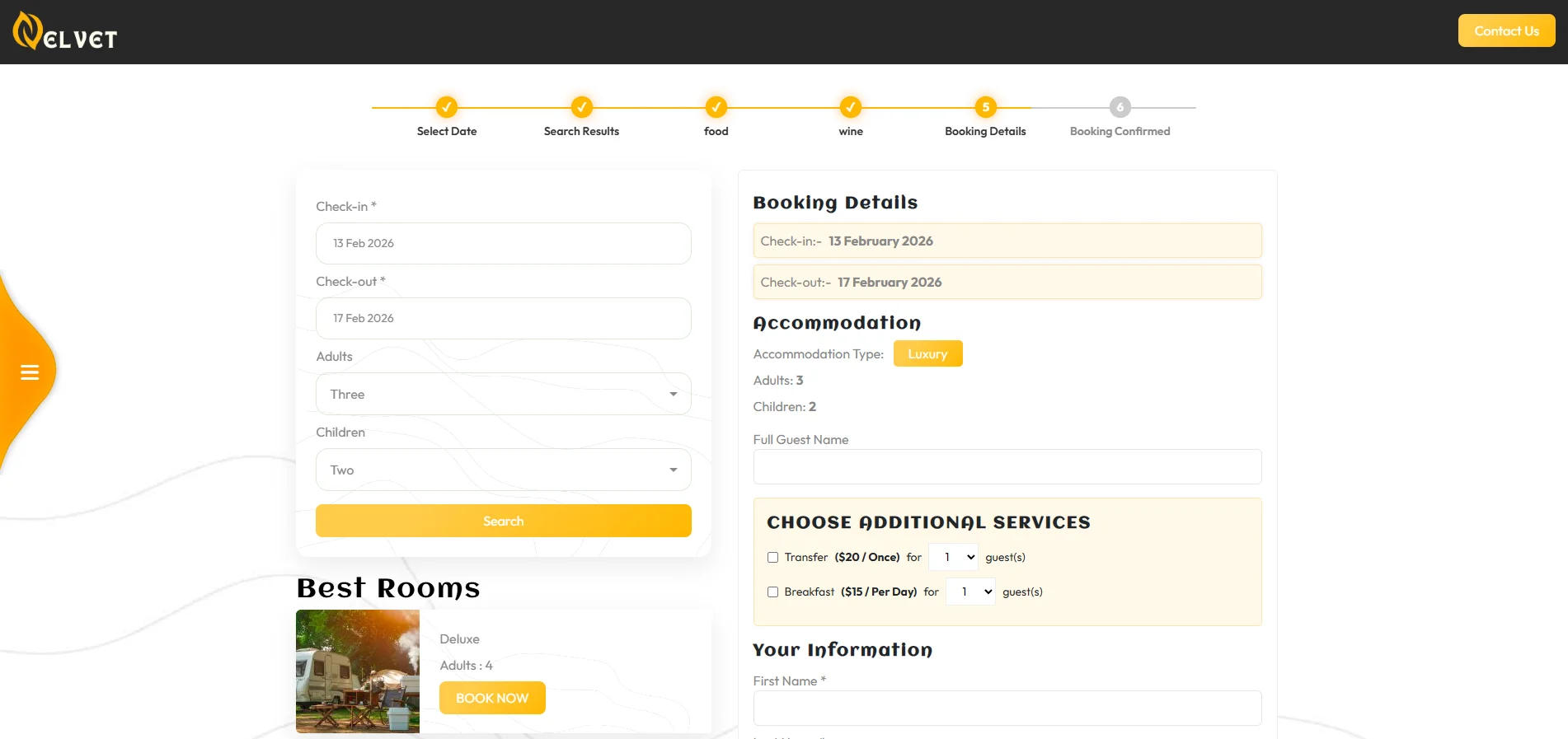 The website offers an all-in-one solution where users can easily book camping experiences that include prepared food and wine packages. By integrating campsite reservations with dining services, the platform removes the stress of trip preparation. Customers can select personalized packages, complete secure bookings, and enjoy a comfortable and memorable outdoor experience that combines nature with fine dining.